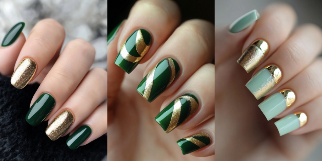 Looking for a nail design that screams elegance and creativity? Gold and green are the perfect combination. These two colors